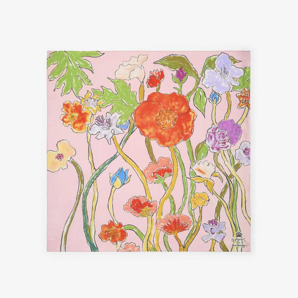 The Highgrove X Burberry Cascading Flowers Silk Scarf (Pink) is a distinguished piece from the fourth capsule collection with Highgrove x Burberry. It reflects Burberry’s deep connection to the British countryside and the iconic landscapes of Highgrove Gardens.