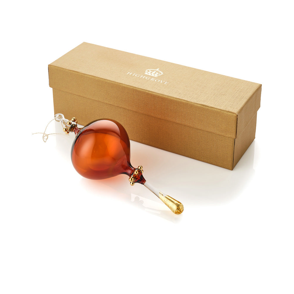 This Classic Shape Amber Decoration was commissioned by Highgrove Gardens for 2024 as part of a series of exclusive hand-blown glass decorations. These ornaments are designed to add a touch of luxury and festive cheer to homes and embody the classic elegance of traditional blown glass Christmas decorations. A particular highlight is the gold acorn design, inspired by the beloved gardens of King Charles III and Queen Camilla. This design symbolises growth and potential, making it a fitting choice for the new year.